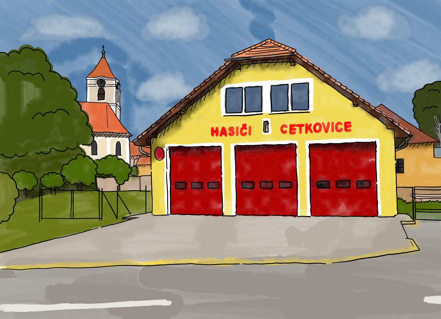 Původní hasičská zbrojnice byla umístěna na Návsi, dnes č.p. 248. Později byla přemístěna do stodoly, která byla součástí budovy dnešního obecního úřadu. První plány vybudování nové hasičské zbrojnice jsou datovány do roku 2010. Výstavba první etapy začala v roce 2013 a slavnostní otevření proběhlo 19. července 2014. Následná druhá etapa, která byla dokončena v roce 2016, řešila půdní a společenské prostory pro činnost hasičů. Na čelní straně budovy mezi okny v 1. patře je umístěna dřevěná soška sv. Floriána, patrona hasičů.